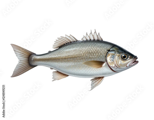 One fresh sea bass fish isolated on white background