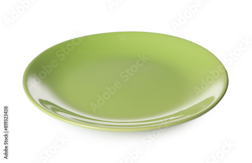 One green ceramic plate isolated on white