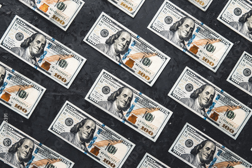 One hundred dollar bills are creatively laid out. Business concept, development perspective.