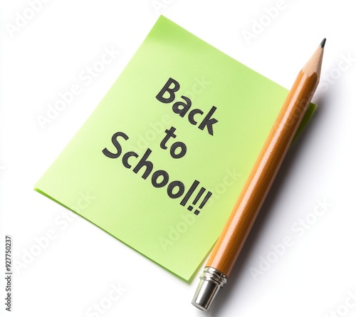 One light green sticky note with the words "Back to School!" written on it, isolated on a white background