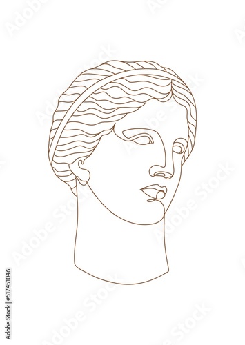 One line Ancient Greek goddess statue. Aphrodite or Venus ancient classical statue. Vector art for design of posters, clothes, logo, invitations.