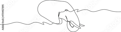 One line art elephant. Minimalist continuous line drawing of elephant head for modern design