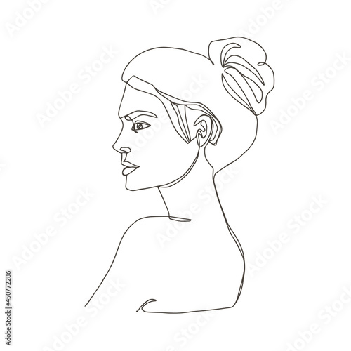 One line art female portrait. Vector illustration