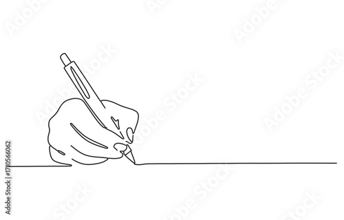 One Line art hand writing continuous line art drawing hand with pen line art illustration hand holding
