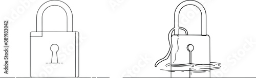 One line art illustrating a safety padlock. Web security lock on an information privacy network in a modern illustration.