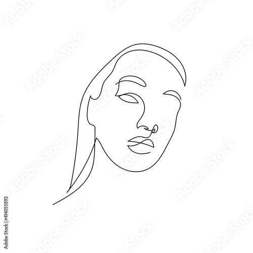 One line hand drawn vector woman face. Abstract portrait. Simple logo in minimal style for beauty salon, beautician, makeup artist, stylist. .