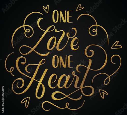 one love one heart golden calligraphy design valentine's day banner