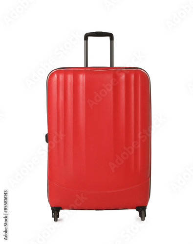 One new red suitcase isolated on white