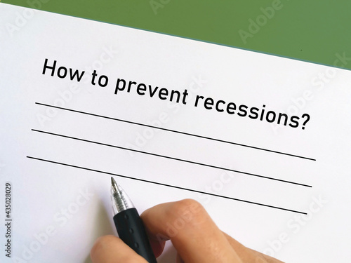 One person is answering question about banking. He is thinking how to prevent recessions.