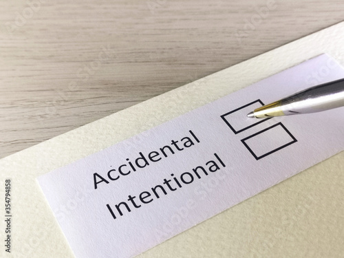 One person is answering question on a piece of paper. The person is thinking to be accidental or intentional.
