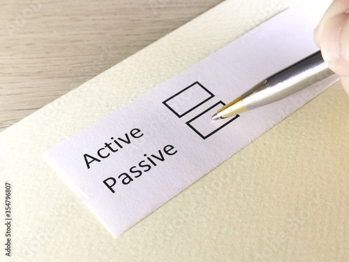 One person is answering question on a piece of paper. The person is thinking to be active or passive.