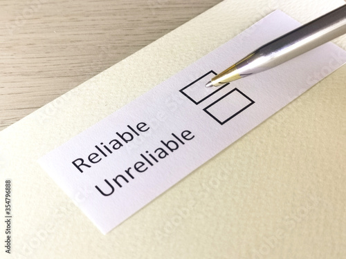 One person is answering question on a piece of paper. The person is thinking to be reliable or unreliable.
