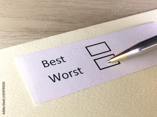 One person is answering question on a piece of paper. The person is thinking to be the best or the worst.