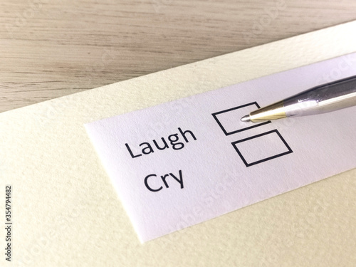 One person is answering question on a piece of paper. The person is thinking to laugh or to cry.