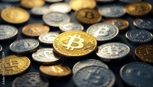 One shiny gold coin amongst many dull silver coins, many, exceptional, single
