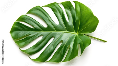 one single tropical monstera leaf on white background