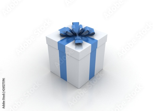 one white gift box with blue ribbon and bow isolated