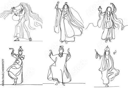 One-Line Drawing of Gnawa Dancers: African Spirit and Vibes in Minimalist Art, vector