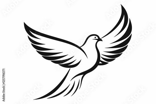 One-Line Pigeon in Flight – Elegant Black Silhouette Vector Icon, pigeon symbol Of silhouette vector illustration.