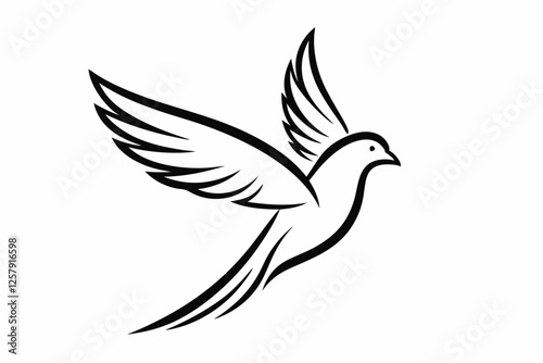 One-Line Pigeon in Flight – Elegant Black Silhouette Vector Icon, pigeon symbol Of silhouette vector illustration.
