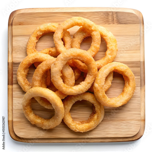Onion rings with ketchup, top view.
