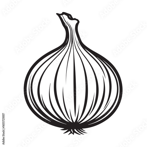 Onion silhouette drawing, vegetable line art, root food vector, minimal kitchen icon, botanical illustration design