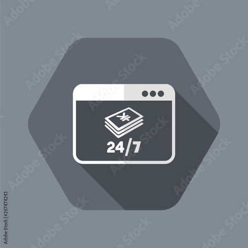 Online banking service 24/7 - Yen - Vector flat icon