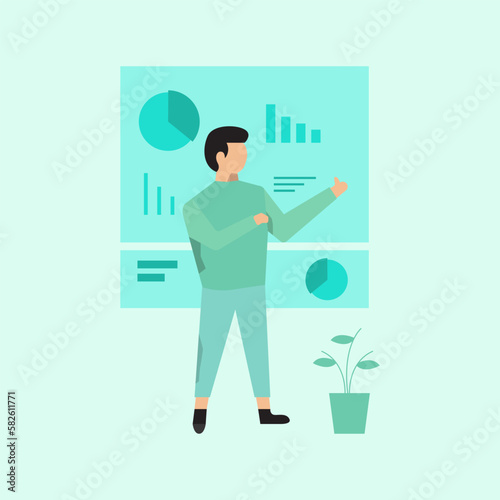 online business marketing illustration, with a scene of a man pointing at a chart. premium vector style business activities