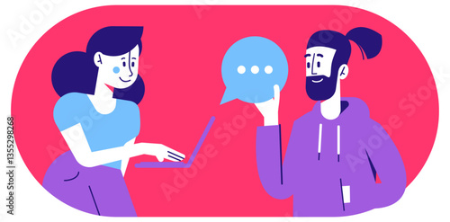Online Communication Illustrations - Cartoon People Chatting in Different Poses and Colors