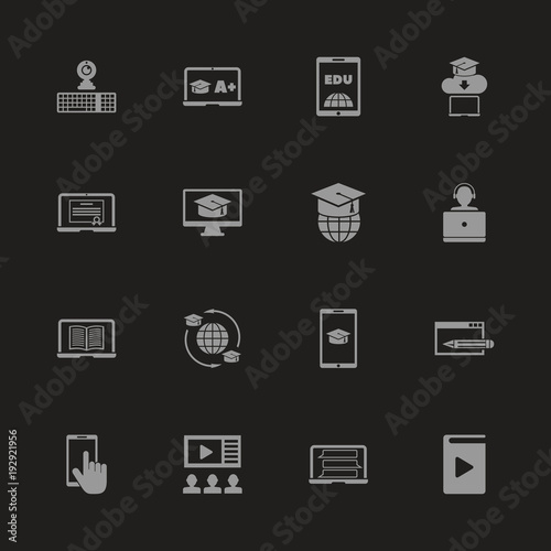Online Education icons - Gray symbol on black background. Simple illustration. Flat Vector Icon.