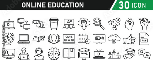 Online education line icons collection. icon set in a flat design. Thin outline icons pack. Vector illustration collection