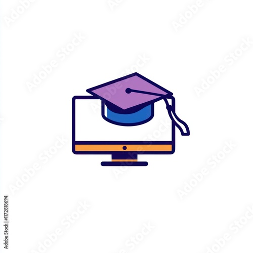 Online Graduation Cap on Computer Screen Represents E Learning
