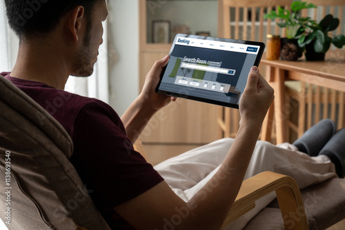 Online hotel accommodation booking website provide modish reservation system . Travel technology concept .