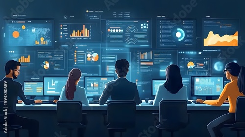 Online meeting interface with business team sharing ideas through video conferencing, vector style