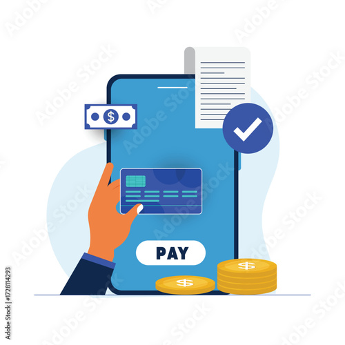 Online payment concept. Payment by credit card hand holding