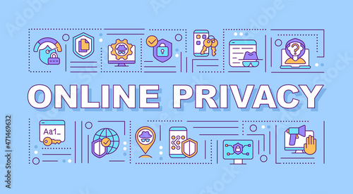 Online privacy and data protection word concepts banner. Infographics with linear icons on blue background. Isolated creative typography. Vector outline color illustration with text