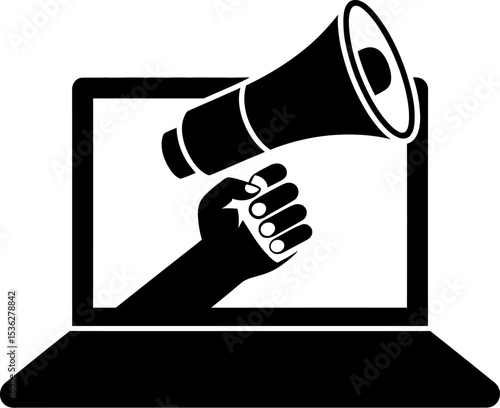 Online promotion megaphone laptop digital marketing social media advertising announcement vector icon editable stock vector illustration