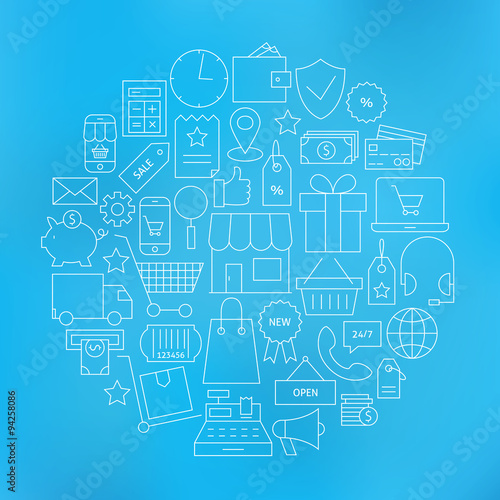 Online Shopping and Money Line Website Icons Set Circle Shaped
