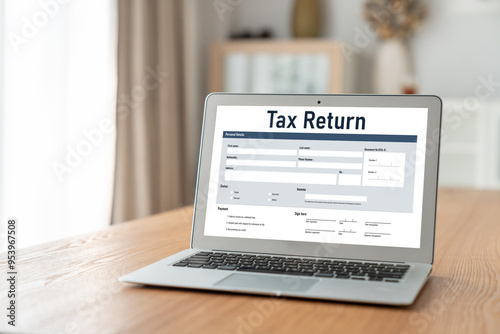 Online tax return form for submitting individual income tax return form snugly on the internet website. Government web for tax payment and return. Taxation technology concept.