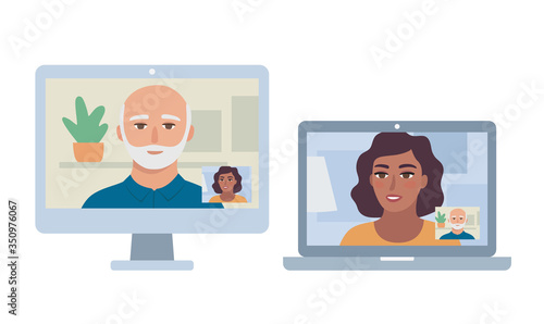 Online therapy consultation. coworkers/family virtual meeting in online video call. work/study video conference. Work from home concept. Quarantine stream communication