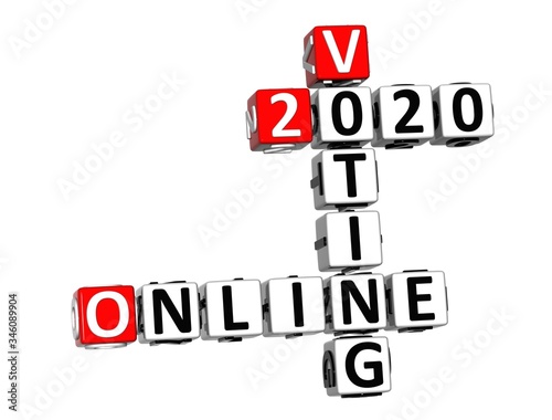 Online Voting 2020. 3D red-white crossword puzzle on white background. Creative Words.