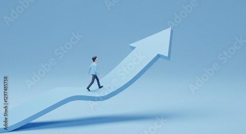 Onwards and Upwards, Path to Success, Man Walking on Arrow, Career Growth and Success, 3D render