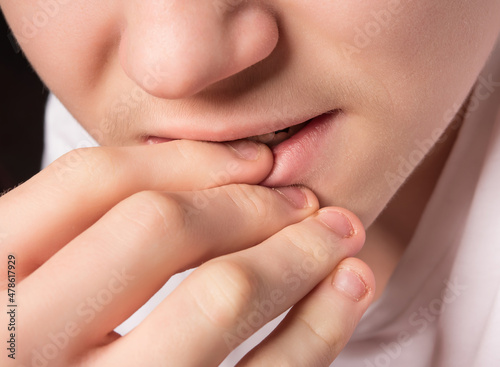 Onychophagia, compulsive nail biting. Mental disorder, obsessive - compulsive syndrome.