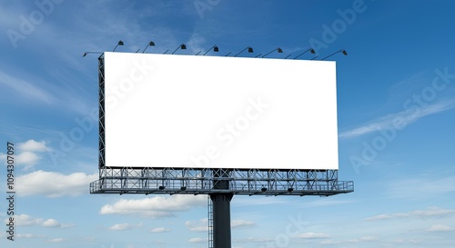 青空背景、何もない白い広告パネル、OOH|Blue sky background, empty white ad panel.