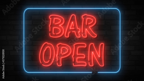 Open bar night neon letter. Red and blue neon sign bar open.