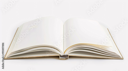 Open Blank Book: An open blank book isolated on a white background.