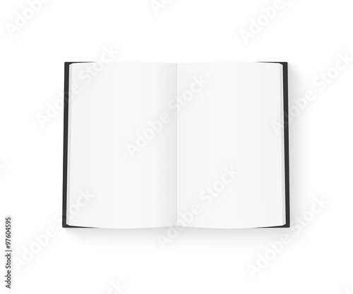 Open blank book mock up isolated on white. Black cover diary.