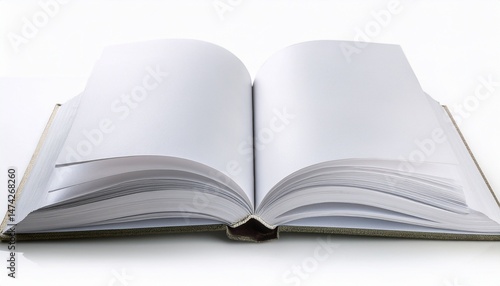 open blank book mockup with white paper pages isolated on white background flat lay cutout