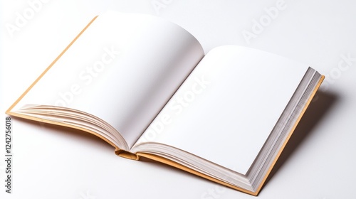 Open Blank Book with Tan Cover and Decorative Edges on White Background