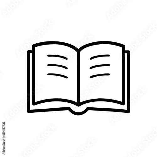 Open book illustration in simple black line art style